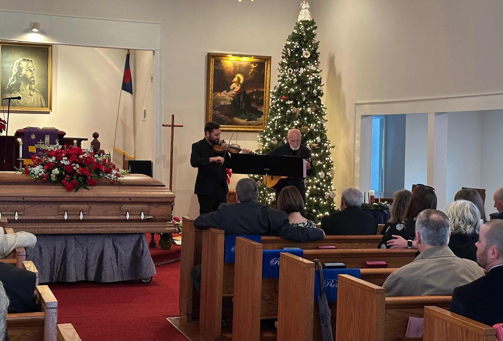 [Photo Above: Alta’s grandson, Jim Graddick playing the fiddle during the service.]